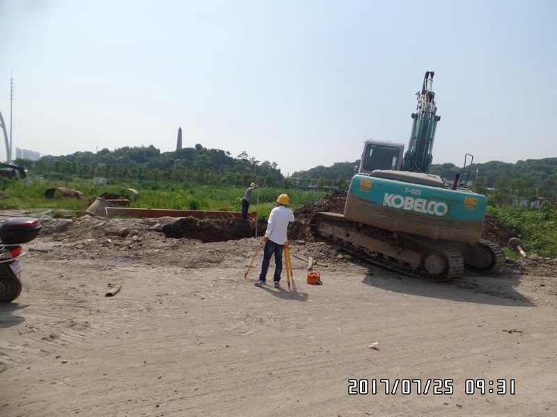 连日高温,工程测量员们顶着烈日、迎着热浪,用各种仪器进行精密作业。“测量是为工程提供基础数据,不允许半点马虎”刘佳文说,“今天早上有些风,还不算很热,昨天我们测量放样到11点半,收工的时候头都晕了。”随后刘佳文和几位测量员分成两组。一组驻守原地,通过“全站仪”仪器,将立柱具体位置放样出来;而另一组人员扛着十几公斤重的测量仪器去测量高程,给承台开工提供具体数据。