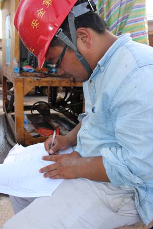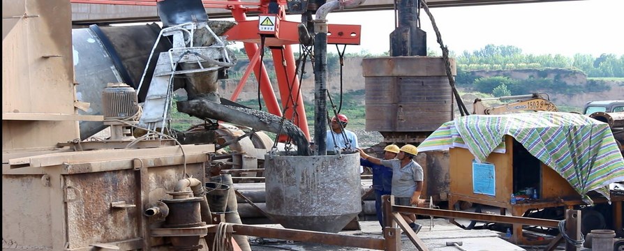 本次浇筑采用C40混凝土,利用泵车浇筑、罐车自罐双管齐下的浇注方式,共浇筑664m³。14-4#桩,孔深109.3米,其中2.5米直径的桩长48米,3米直径桩长61米,采用气举反循环钻进,历时31天成孔。在钻进到标高209.5米左右时,由于地层复杂,发现漏浆现象。项目部便果断进行漏浆处理措施。起初下放锯末屑,高粘性黏土等,但是由于缝隙过大等原因,静置一段时间后,继续钻进,发现孔内泥浆水头继续缓缓下沉。不能有效起到改善漏浆问题。为解决这一技术难题,经项目部集体研究,决定采取孔底泵压水泥浆的方案进行处理漏浆,即用水泥浆将卵石层部分固结,以达到封堵泥浆外流的效果。静置48小时后,水头静止无变化。往孔内投放制浆材料重新制备泥浆并定期进行泥浆指标的监控,直至达到泥浆各项指标要求后。用正循环缓缓钻完之前3米的水泥浆段,使得孔底高程207.6米。到达自然土层,开始使用哑铃钻继续缓慢进尺,直至穿透卵石层。经项目部全体参建人员的共同努力,最终圆满完成了施工任务。徐金亮