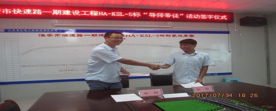 - 淮安市快速路一期建设工程KSL-5标项目部举行“导师带徒”活动签字仪式